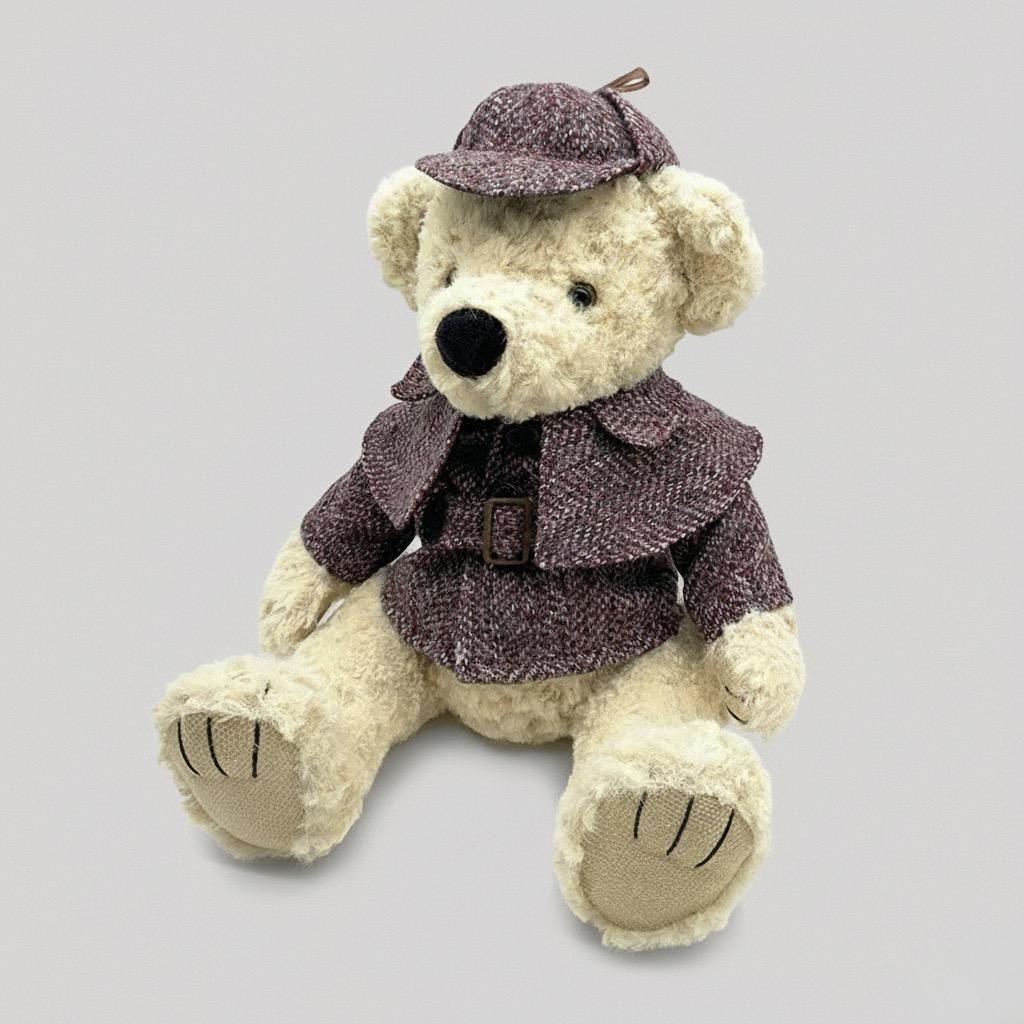Dapper Detective Look: Decked out in a classic herringbone detective coat and matching cap, this teddy oozes old-school mystery and style. He’s not just a plush toy—he’s a conversation starter for anyone who loves whimsy and nostalgia.
