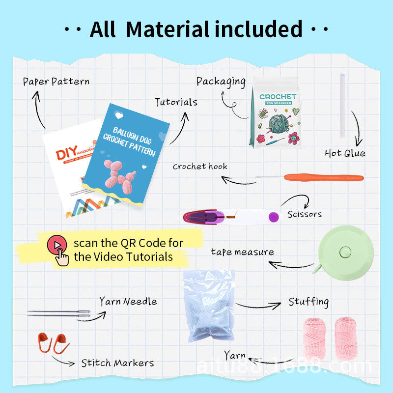 • 【Complete Crochet Animal Kit】We provide all the tools and materials you need, from pre-prepared crochet pieces, crochet hooks, yarn, stuffing, to video tutorials and basic crochet manuals. You can start right away without making any additional purchases.