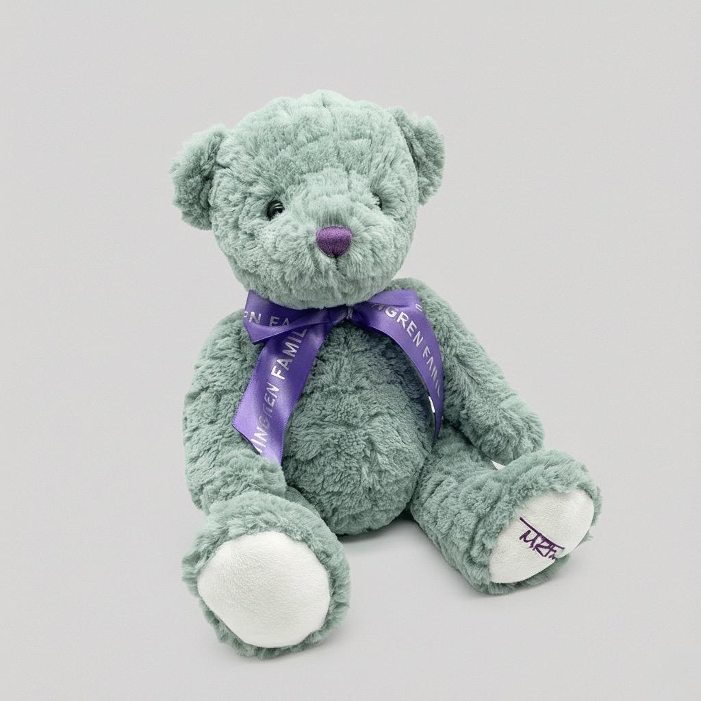 💜 Elegant Design Details: The soft sage hue pairs beautifully with a vibrant purple ribbon and a cute purple nose. Plus, the contrasting white paw pads (with a subtle logo) add an extra dash of charm.